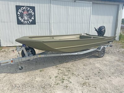 2024 Crestliner 1648 Mod-V Jon Boat. Powered by a Mercury 20ELH Four Stroke and packaged with a galvanized E-Z Loader bunk trailer.Dead Grass...