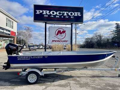 2023 Crestliner 1672 Outreach. Powered by a Mercury 20ELH EFI Four Stroke with electric start. Packaged with a 1,200 lb galvanized E-Z Loader bunk...