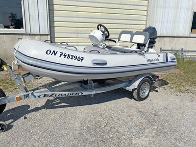 2020 Highfield CL 340 Rigid Hull Inflatable boat. Powered by a Yamaha 25 hp outboard and packaged with an E-Z Loader galvanized bunk trailer. ...