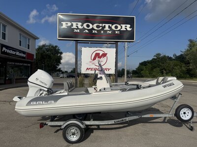 2022 Gala V420 Rigid Hull Inflatable boat. Powered by a Tohatsu 60 hp outboard and packaged with a Load Rite galvanized bunk traile...