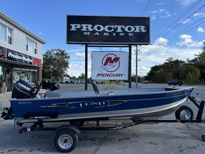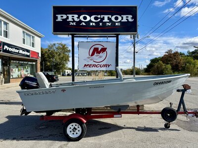 2014 Ultracraft 14 Canadian Tiller. Powered by a 2020 - 20 hp Mercury FourStroke with electric start, and packaged on single axle bunk...