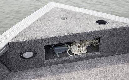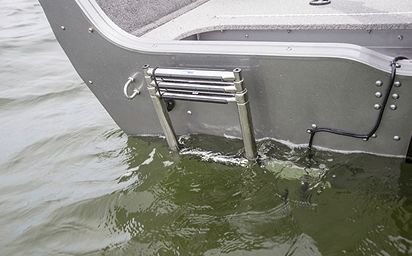 Stainless steel flip-up cleats provide secure tie down when docked and a clean gunnel while trolling.