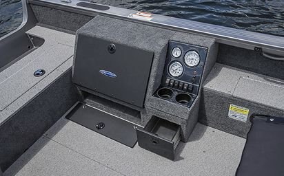 Command console, w/lockable storage & electronics compartment, w/pull-out tray, lockable storage drawer, tackle storage, drink holders (2), gauges, rocker switches & 12V power outlet