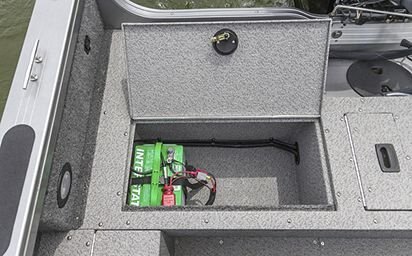 Trolling motor battery & charger storage compartment (24V system compatible) (under center rod locker)