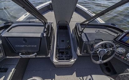 The 1750 Fish Hawk delivers epic fishing performance on any type of water for any species you care to pursue. The deep, secure cockpit is outfitted with a carefully selected group of premium fishing features including storage for up to 12 rods up to 8’6”, three tournament-style seats with seven pedestal bases, and a console design with room for 12” and 10” side-by-side gimbal-mounted screens. All of this rides on Crestliner’s revolutionary AP-X Hull for a ride like no other Deep-V fishing boat on the market.