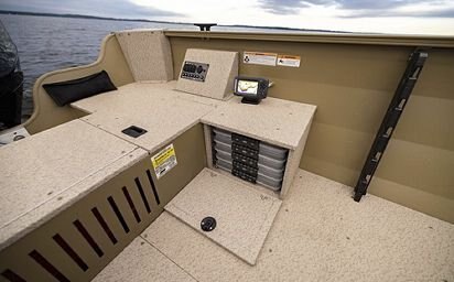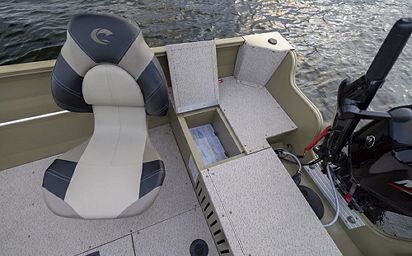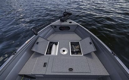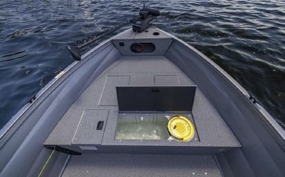 Trolling motor battery storage compartment (12V system compatible) (bow)