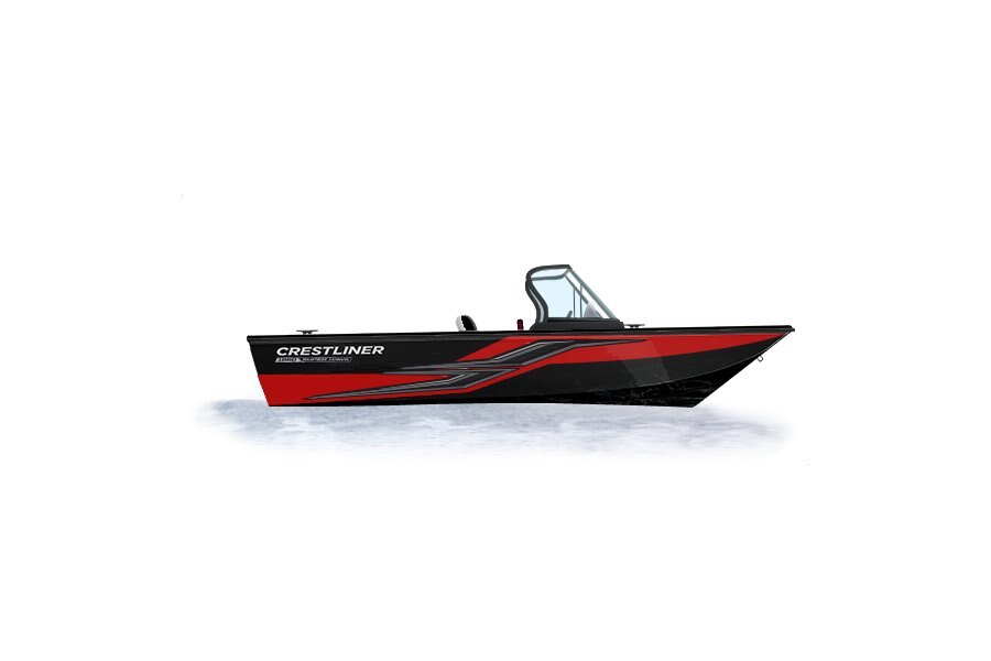 2025 Crestliner 1950 SUPER HAWK Black Metallic base w/Fire Red Metallic accent & Gray interior SUN TOP