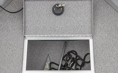 Rod storage, lockable (center, in floor) (6 tubes @ 7'6; capacity)
