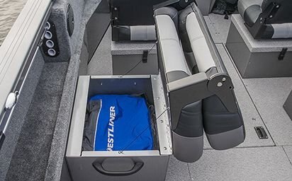 2025 Crestliner 2050 COMMANDER Black Metallic base w/True Blue Metallic accent & Gray interior BOW STEP STORAGE BOX