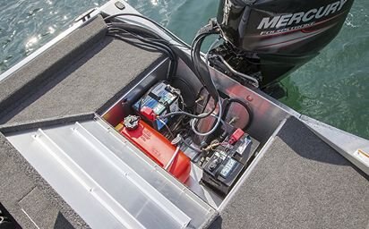 2025 Crestliner 1600 STORM True Blue Metallic exterior & Matte Gray Crest Liner interior STORAGE STEP
