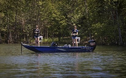 Non-slip, durable and easy-to-clean, the Crestliner interior coating in matte gray allows you to focus on the catch. Camouflage paint optional.