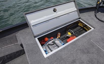 Up your game with the optional Pro Package. Includes upgraded black sport steering wheel, windscreen, automatic bilge pump, recirculating livewell pump (stern), insulated livewell and storage compartment lids (stern), chrome compression latches, LED interior lights for bow and stern decks, stern livewell and rod locker, ratchet straps and upgraded premium mag wheel trailer.