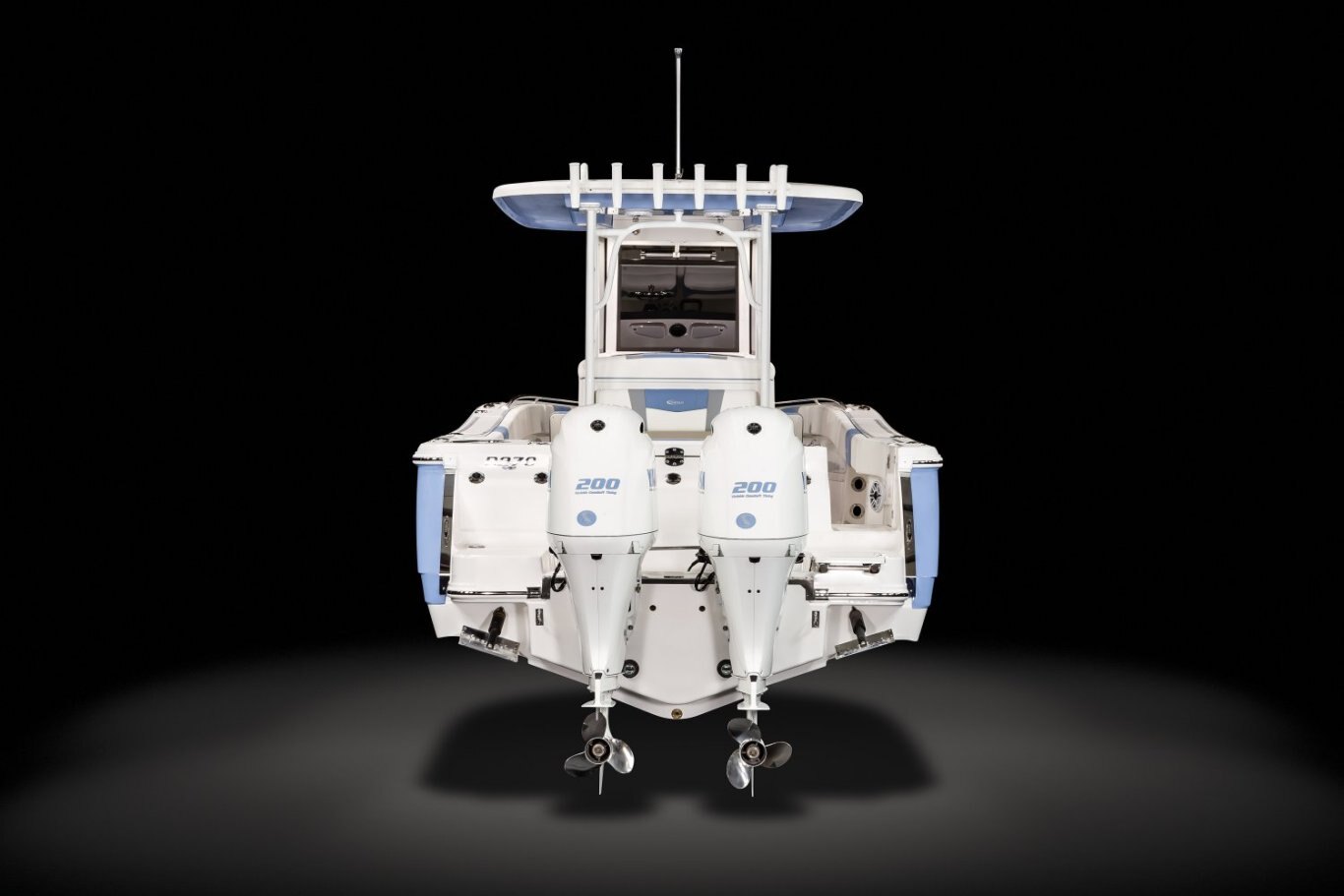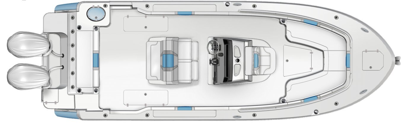 Aft Cockpit Insulated Fish Boxes (53 Gallons Each) with Overboard Drain and Discharge Pump Aft Facing Seat with 20 Gallon Molded Cooler or Livewell Underneath Bow Casting Platform Converts to U-Shaped Seating with Removable RTM Fiberglass Filler Bow Cushions - Removable Bow Floor Storage with Fiberglass Lid Bow Insulated Livewell (20 Gallons) with LED Lighting Cockpit and Bow Coaming Bolsters Cockpit Coaming Tackle Storage with Removable Boxes (Port) Cockpit LED Courtesy Lights - Blue Cockpit Table and Bow Filler Cushion with Dedicated Storage Custom Helm Seating with Flip Up Bolsters and Armrest Diamond Lustre Non-Skid Surfaces Full Transom Seat Folds Flush into Transom Wall Horizontal Rod Storage under Gunwale (Port and Starboard) Interior Color Packages: Harbor Atlas Blue, Harbor Black, Harbor Blue, Harbor Gray, Harbor Ice Blue, Harbor Steel Blue, Harbor Mist, Shadow, Sand or Dune Molded Gunnel Insert with Stainless Steel Toe Rail Oversized Battery and Pump Compartment in Transom Port Aft Insulated Livewell (30 Gallons) with LED Lighting, Blue Gelcoat Finish and Adjustable Flow Valve Port Cockpit Side Entry Door with Custom Stainless Steel Frame and Hardware Premium Stain Resistant Silicone Cockpit Fabric Removable Bow Seating Backrests (Port and Starboard) RTM Fiberglass Lids Self Bailing Cockpit with Integrated Drain Fittings Stainless Steel Bow Rail Stainless Steel Cockpit Grab Rails Stainless Steel Drink Holders (4) Stainless Steel Friction Hinges on Molded Hatches Stainless Steel Rod Holders Mounted in Deck Gunnels (10) Stainless Steel Rod Holders Mounted on Transom Wall (6) Twin Bow Insulated Fish Boxes (25 Gallons) with Overboard Drains Walk Thru Transom Door