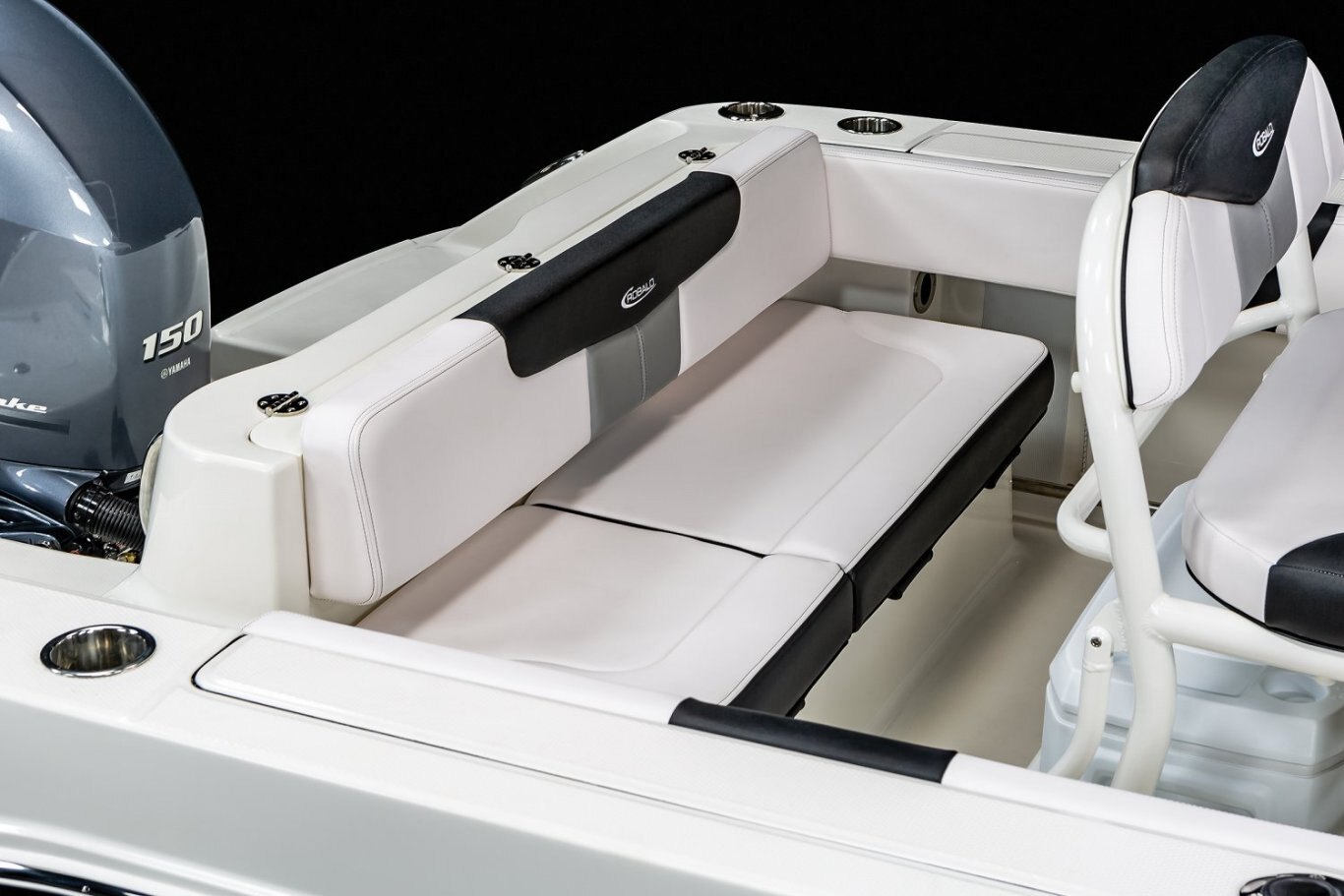 • Aft Bench Seating with Storage under 5 Gallon Bucket and Access to Rigging Compartment